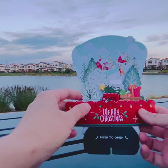 A Holiday Surprise That Pops – Measuring 5” x 7” when folded, this pop-up card lies flat in the envelope and springs to life when opened, creating a delightful 3D Christmas display.