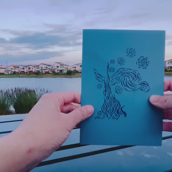 Capture the wonder of Van Gogh’s masterpiece with The Paper Mix Starry Night 3D Pop Up Card.